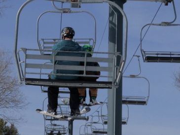 We recommend using them anywhere the adult is comfortable skiing in a strong wedge. We love big cruising Green Runs and nice mellow Blue Runs. Yes, you can take them on the chairlift, just remember to tuck the long tether leash away safely.
