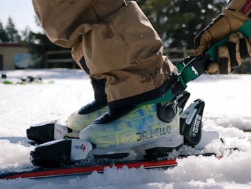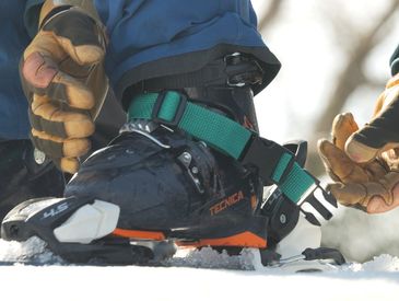 Clip control tether to ankle strap via the tether buckle. The grown-up and the little one connect making one big, long skier. Unclip tether buckle before loading every ski lift.